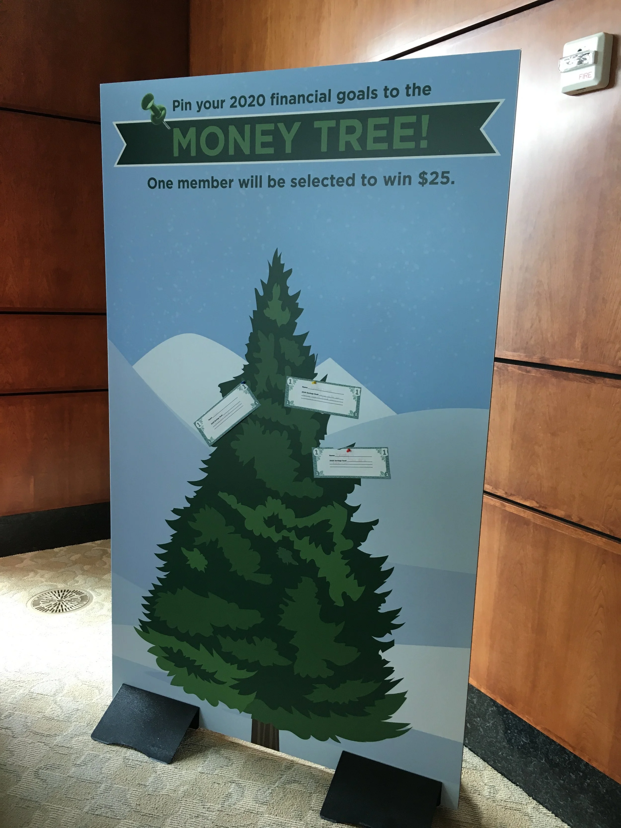 This display motivated members to stay on track with their financial resolutions in a fun and engaging way. There was an additional piece that allowed members to interact with the display and pin up their new year’s savings goal.